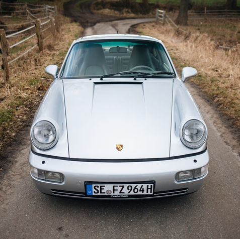 The offered Porsche is a Porsche 911 964 Carrera 2 in GT Silver with a grey leather interior. This beautiful example features a timeless and elegant color combination. Originally sold in 1991 to Edgar Meyer GmbH & Co. KG in Augsburg, the car has a well-documented history. Over the years, it traveled from Kissing via Gelsenkirchen to the north, where it was driven in the Pinneberg area for decades before being handed over to its current owner in 2022.