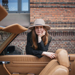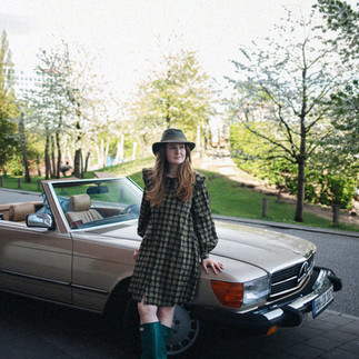 Together with Neele and a classic Mercedes-Benz 380SL R107 from the 1980s from our collection, we created a visual story that blended hats, jewelry, and automotive elegance. The combination of traditional craftsmanship and contemporary design came together seamlessly.